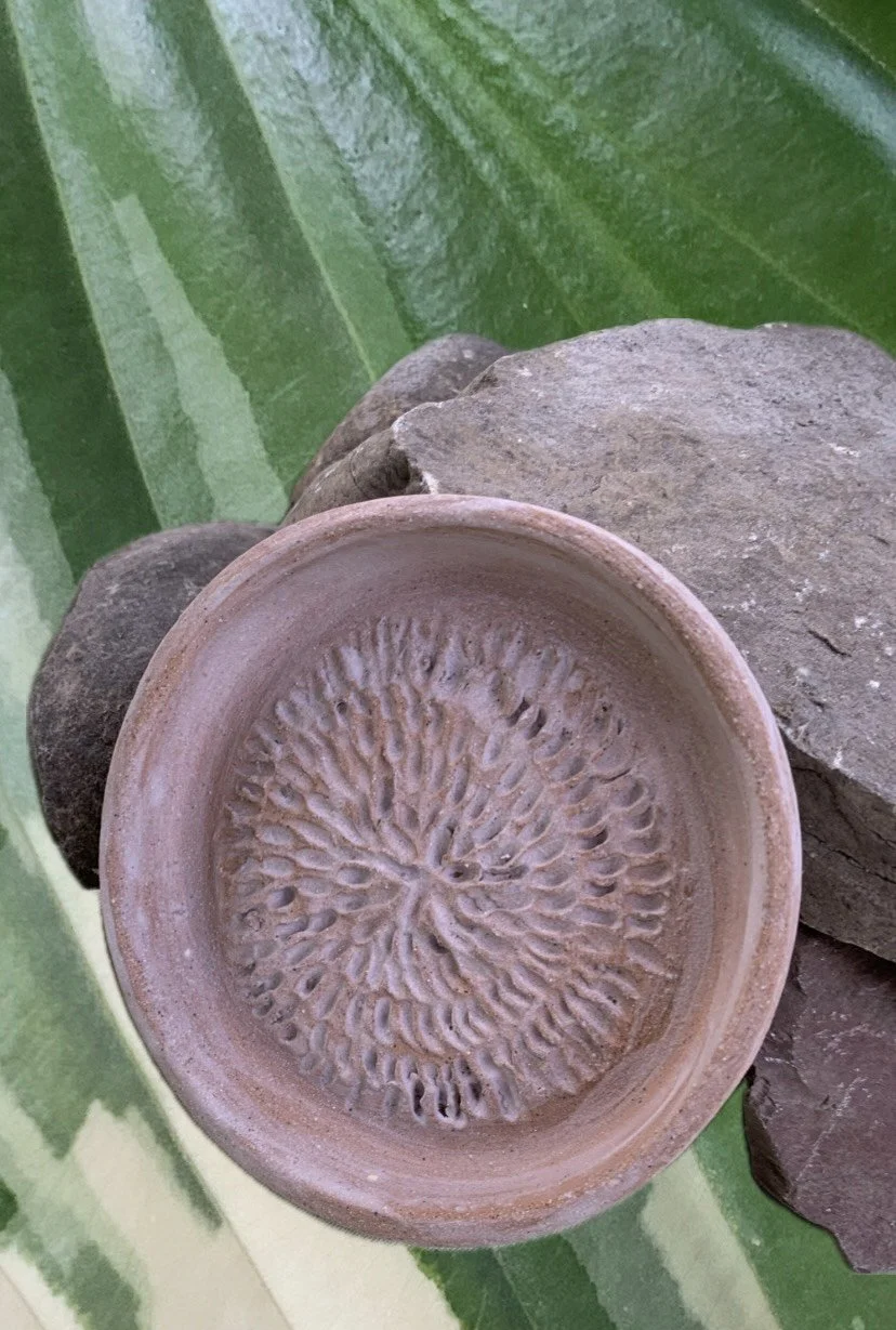 Ces petits plats texturés sont conçus pour râper facilement de l’ail frais, du gingembre ou même du curcuma. Chaque pièce est façonnée à la main avec soin, ce qui leur confère un caractère unique.